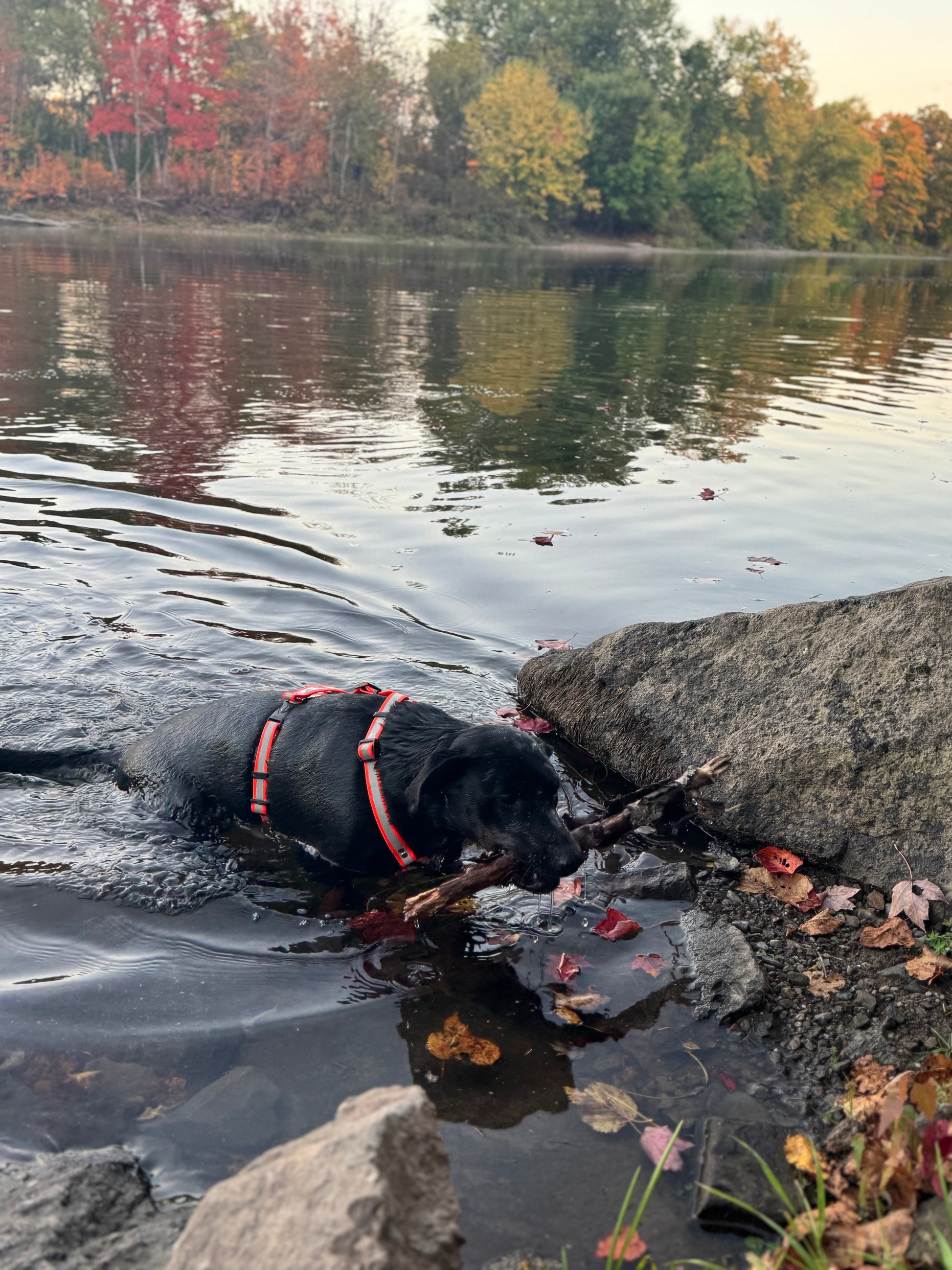 Our harness is made to move, built to promote full range of motion while keeping your dog secure. Adjustable in six places with a buckle on the neck and a handle on the back, it's perfect for every canine partner, no matter the size or comfort level.