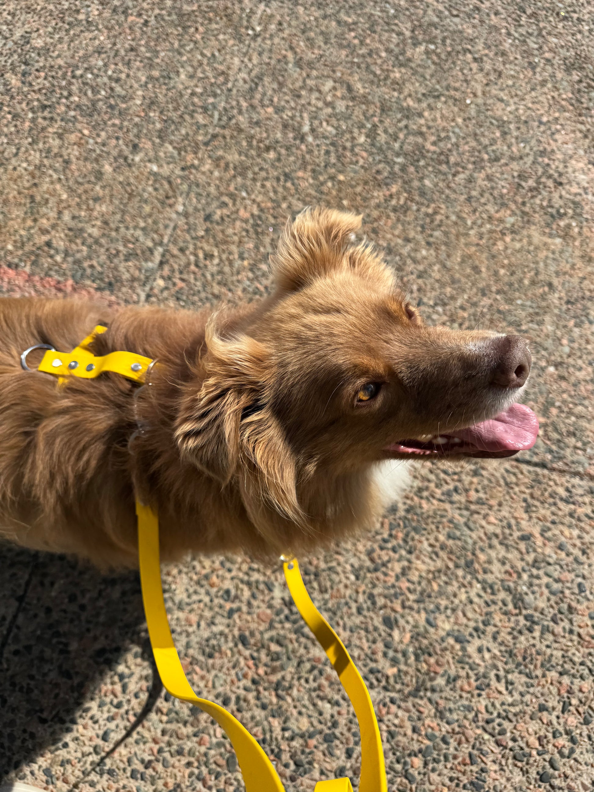 The Adventure Hands-Free Leash is one straight length with a clip on both ends and a floating ring in the middle, making it a great option for wrapping it around your waist, tethering your dog while out at a patio or camping, or giving them a bit of extra room to roam with less biothane to handle than the original Adventure Leash. The double clips mean it can also be used to walk two dogs at a time or clip to both the front and back rings of our Adventure Harness.